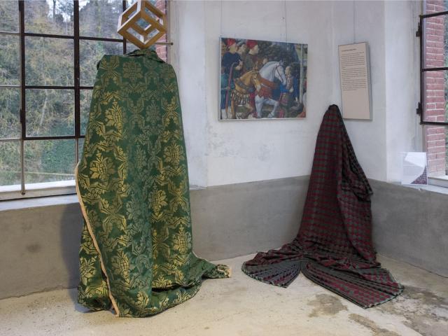 The privilege of being able to admire the beautiful fabrics displayed is due to the admirable work of the textile company Rubelli di Venezia, thanks to which Andrea Gori was able to create the fifteenth-century fabrics for which he had deduced, with scientific rigor, motifs and colors from clothes and gualdrappe of the characters that make up the fairy tale Cavalcata dei Magi, painted in 1459 by Benozzo Gozzoli on the walls of the chapel in the Palazzo dei Medici.