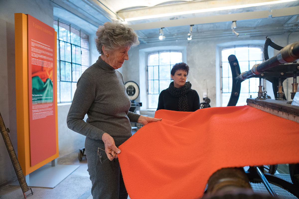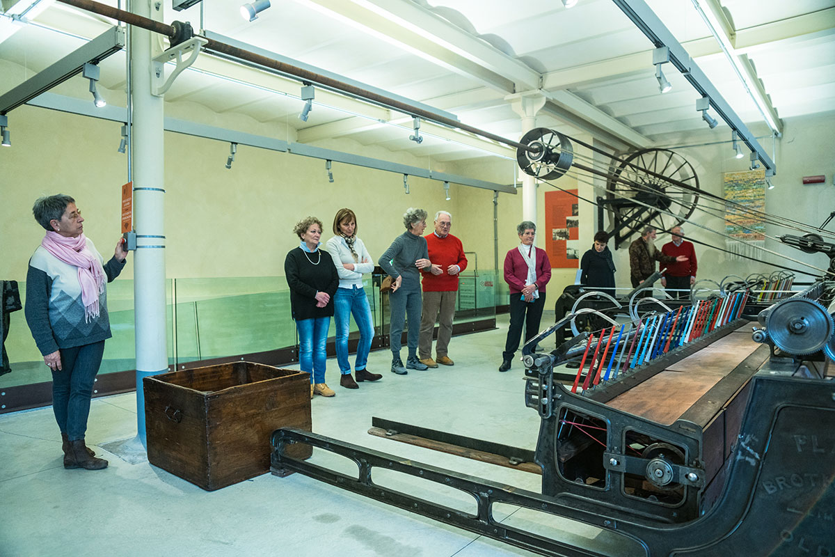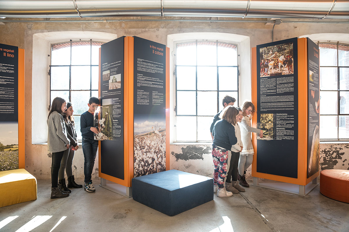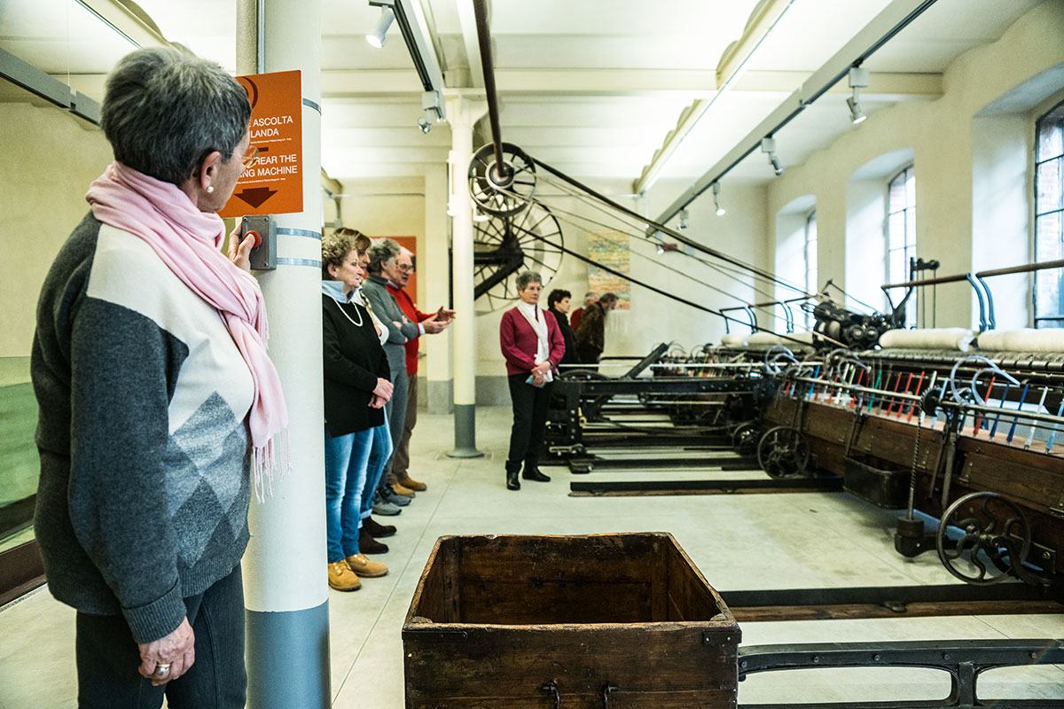 An amazing sensory experience, where you can watch, touch, listen, smell and ... learn! visitors can still recognize inside the rooms, which once housed the production cycles of textile processing, the smell of oils for the lubrication of wool for carding, the intense smell of yarns and fabrics just dyed, or those of metal and acute of textile machinery, and with a little imagination you can also manage to perceive the essences of work and fatigue that are still attached to the walls. To listen to the deafening noises that reverberated in the rooms during the work, we gave voice to the various machines; next to the more representative ones have been applied buttons, which if pressed, reproduce the beat of the frame, the hiss of the spinning mill and the subdued noise of the drums garnished with metal points of the carding department. Tact is also fundamental to fully understand the textile processes and the qualities of a fabric; the hand of a fabric technically indicates precisely those characteristics that can only be recognized with the sensitivity of the hands.