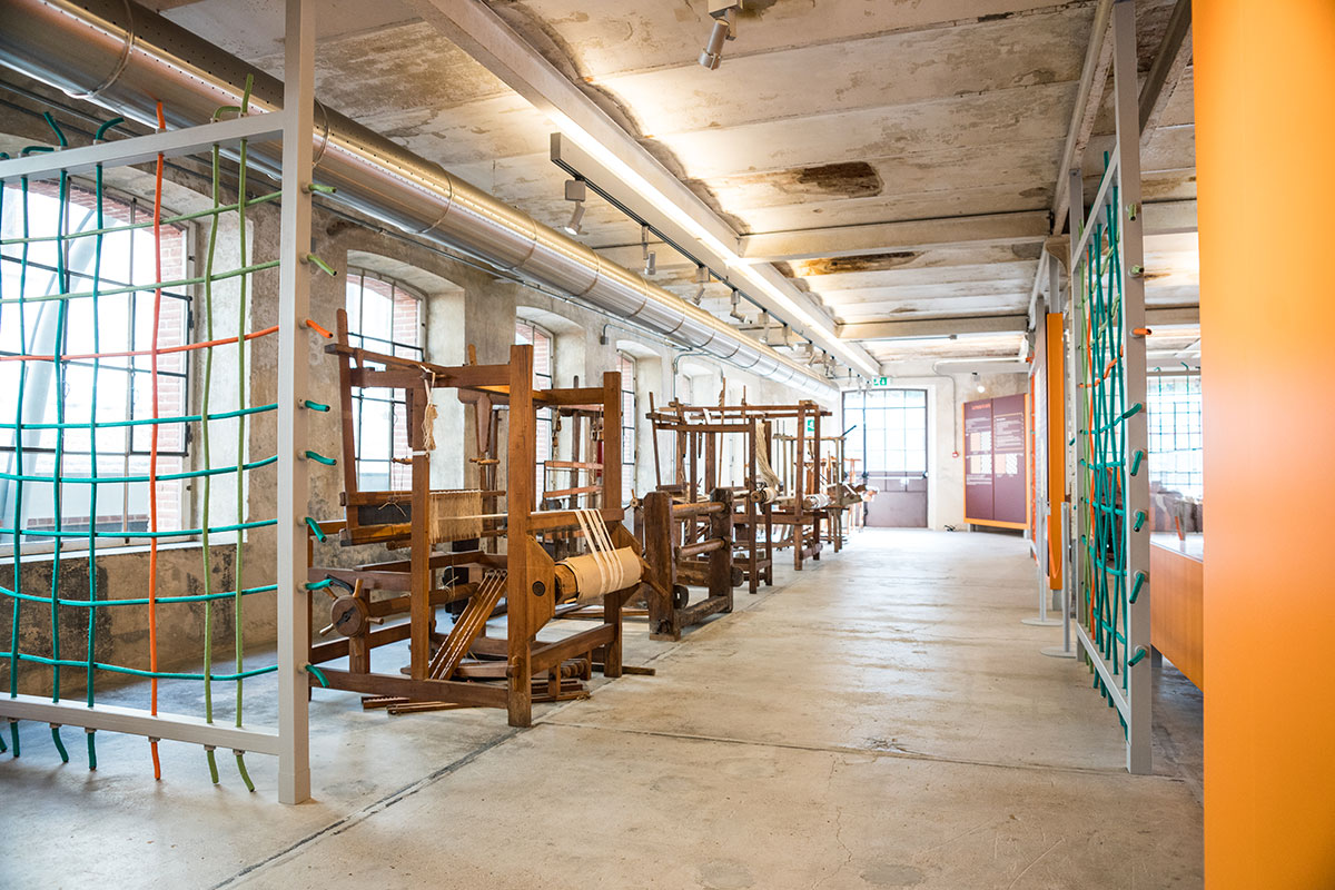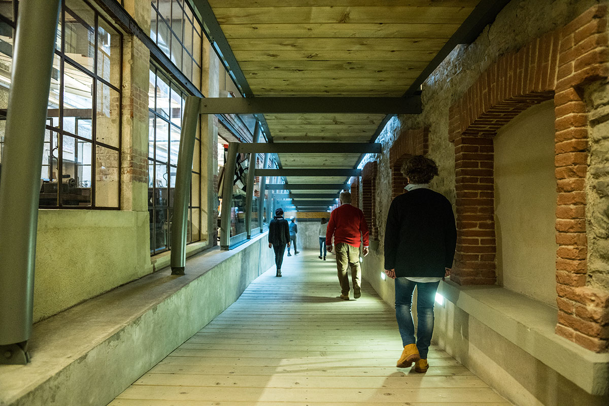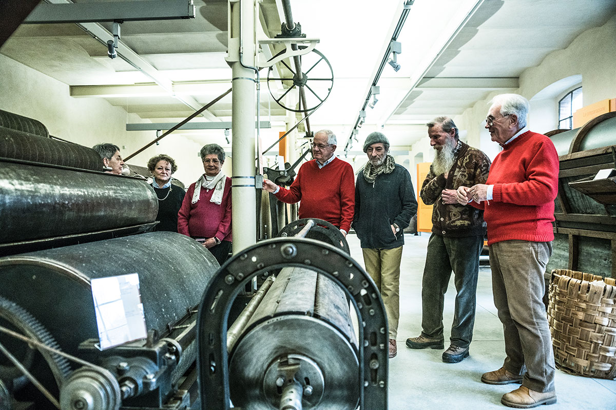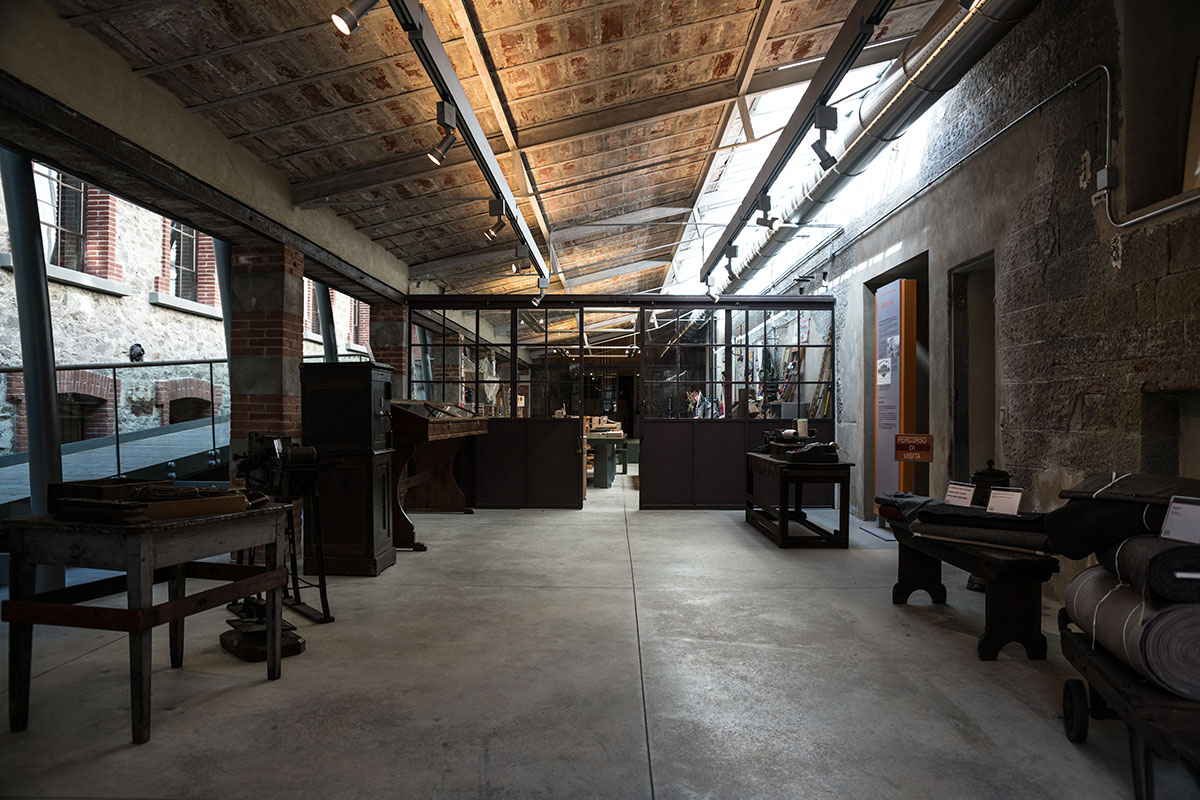An amazing sensory experience, where you can watch, touch, listen, smell and ... learn! visitors can still recognize inside the rooms, which once housed the production cycles of textile processing, the smell of oils for the lubrication of wool for carding, the intense smell of yarns and fabrics just dyed, or those of metal and acute of textile machinery, and with a little imagination you can also manage to perceive the essences of work and fatigue that are still attached to the walls. To listen to the deafening noises that reverberated in the rooms during the work, we gave voice to the various machines; next to the more representative ones have been applied buttons, which if pressed, reproduce the beat of the frame, the hiss of the spinning mill and the subdued noise of the drums garnished with metal points of the carding department. Tact is also fundamental to fully understand the textile processes and the qualities of a fabric; the hand of a fabric technically indicates precisely those characteristics that can only be recognized with the sensitivity of the hands.