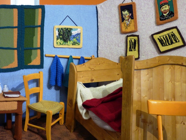 Attraverso le tecniche del tricot e del crochet sono stati riprodotti capisaldi della storia dell’arte come “La stanza di Arles” di Vincent Van Gogh e “Guernica” di Picasso, oggetti dell’immaginario collettivo del secolo scorso come il celeberrimo Cubo di Rubik e la ruota della bicicletta di Duchamp.