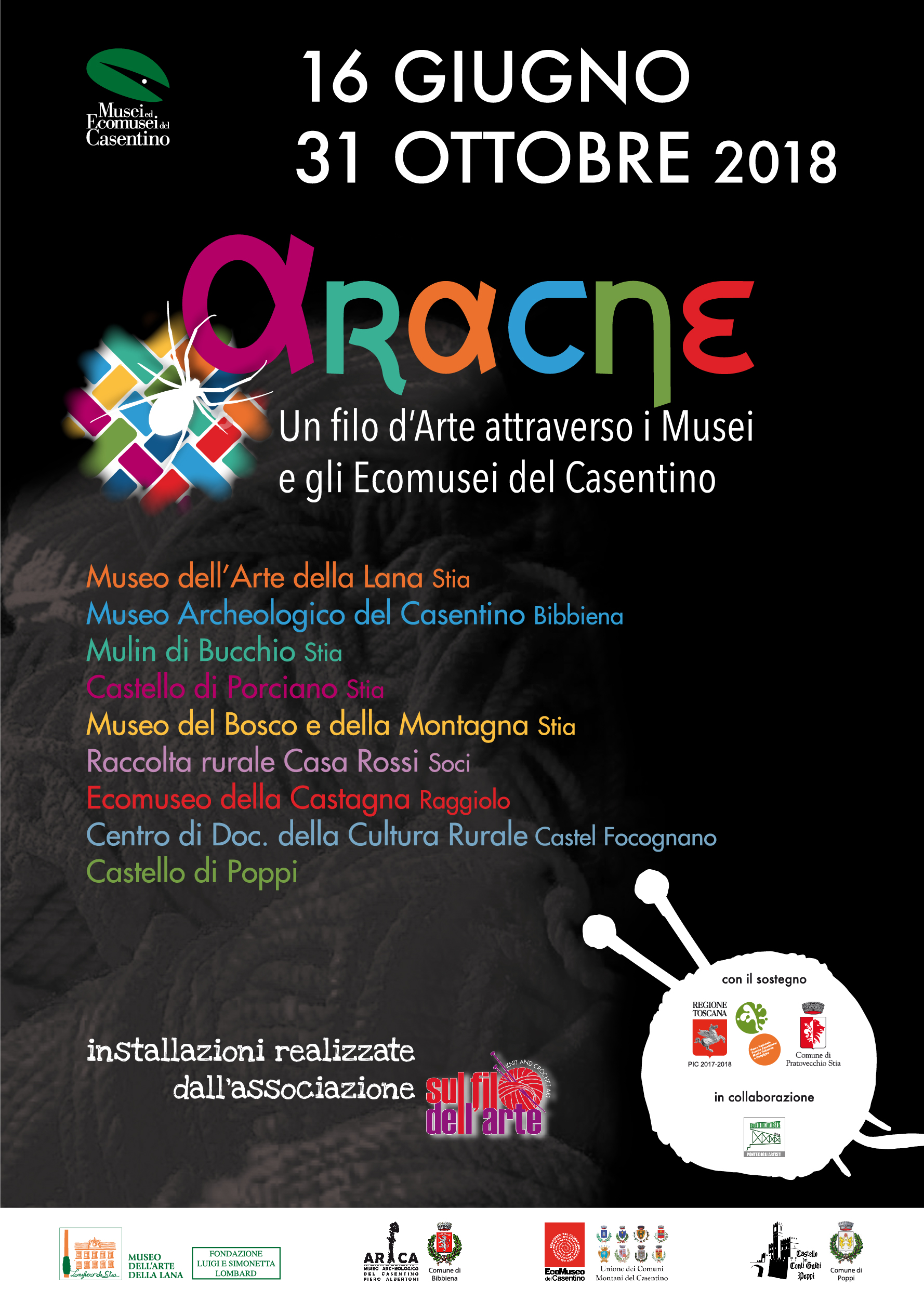 A sancire questo legame quest’estate un filo d’arte legherà i musei e gli ecomusei con l’allestimento della mostra diffusa “ARACNE: un filo d’arte attraverso i Musei e gli Ecomusei del Casentino”.